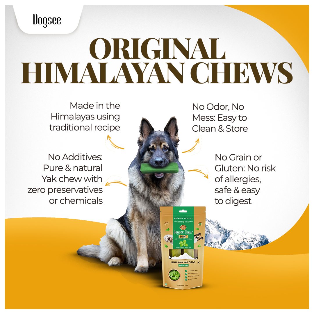 Give your dog the gift of taste, health, and lasting satisfaction with the Dogsee Mint Himalayan Yak Chews Medium Pack of 4, Medium Pack of 6. Made from centuries-old Himalayan recipes, these nutrient-rich treats are smoke-dried to perfection and enhanced with refreshing mint. Suitable for small to medium breeds, they naturally fight plaque, tartar, and odor while promoting fresh breath, strong teeth, and healthy gums. With long-lasting chewability and wholesome nutrition, these yak chews for dogs are the perfect balance of flavor, function, and fun.